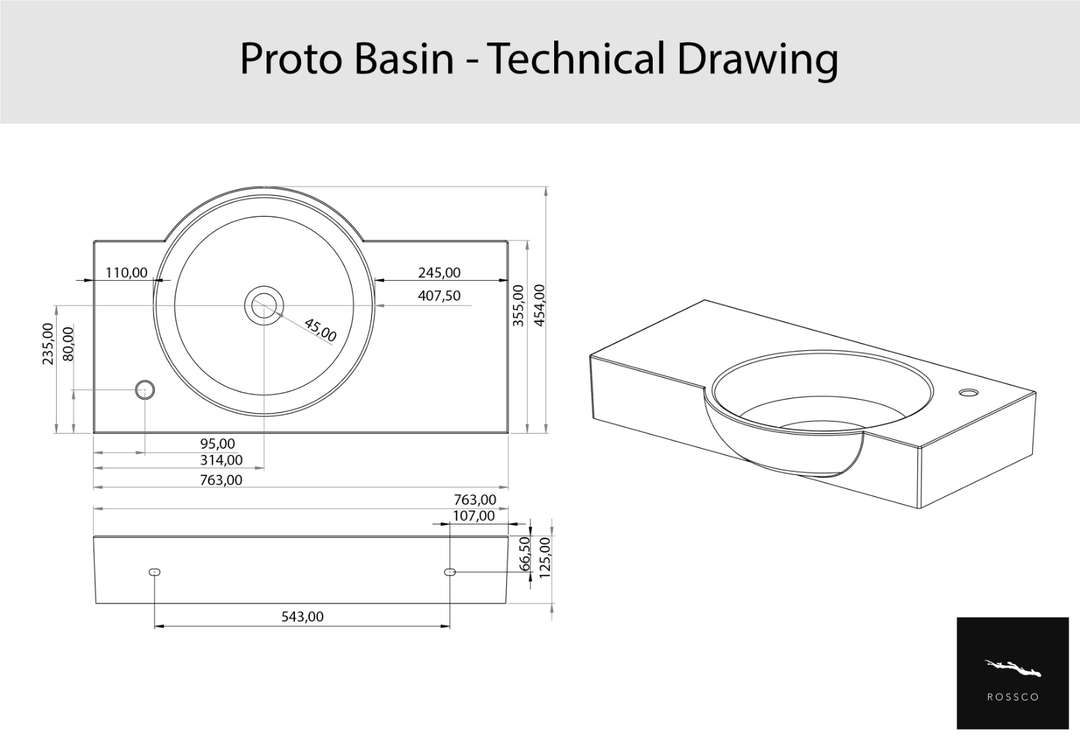 Description: The Rossco Proto Basin combines exceptional durability with a sleek design, perfect for residential and commercial spaces. Designed to withstand frequent use, this Basin / Sink offers a stylish yet functional solution.