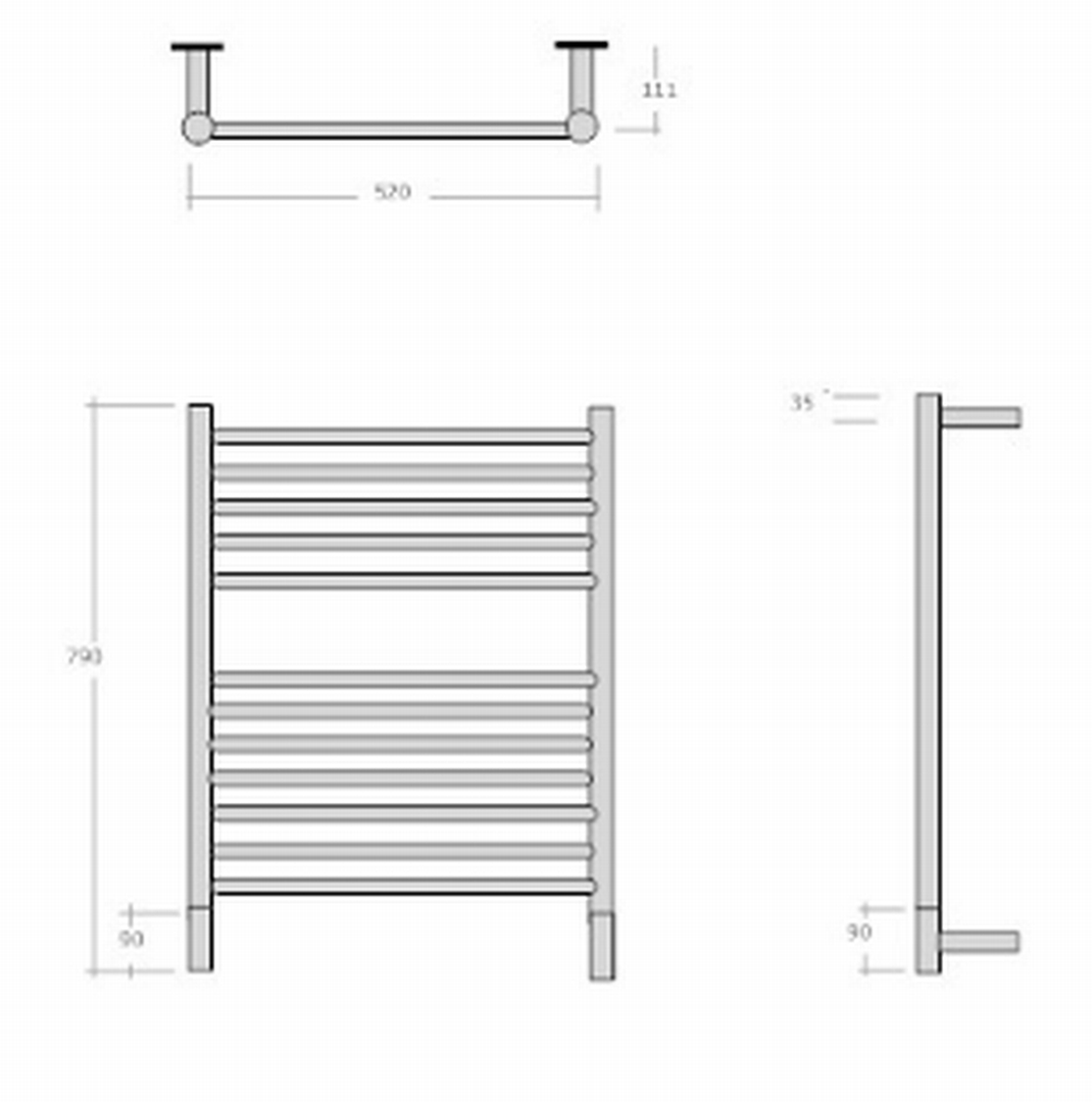 Classic E Straight Heated Towel Rail 400x790mm Brushed Stainless Steel