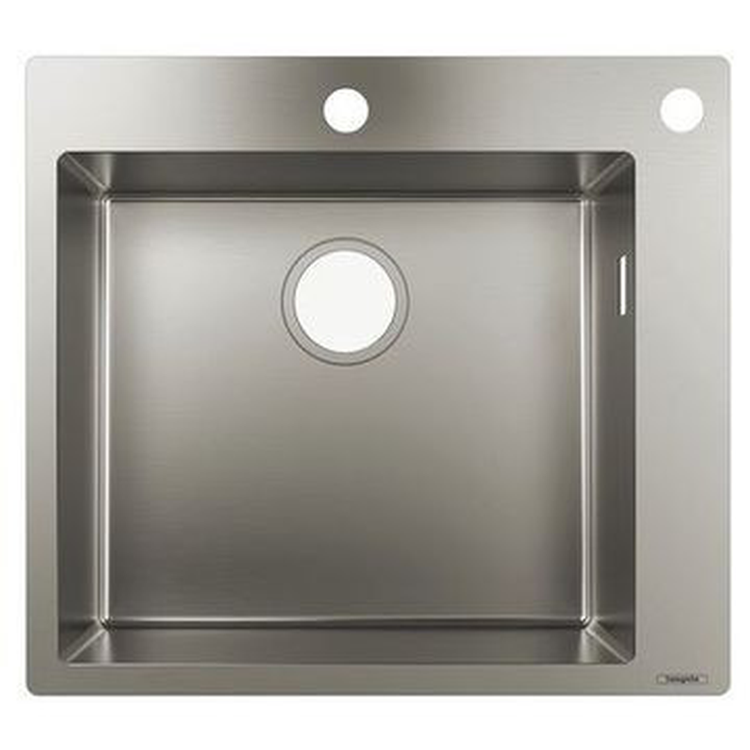 Description: Bringing added ergonomics to the kitchen with an aesthetic stainless steel sink from hansgrohe The hansgrohe S71 450 stainless steel built-in sink for a 60 cm base unit is designed to make kitchen chores more convenient, as it helps users to complete everyday tasks with straightforward functionality. With the basic rectangular shape, the minimalist style is versatile enough to suit all kitchen settings and can be matched with any tap. The design features a wide L-shaped basin rim for an aesthetic twist, transforming the sink into an eye-catcher in the kitchen. The pre-drilled tap hole and hole for remote control of the drain make the sink even more convenient when doing daily kitchen chores. Impressive stainless steel design for more quality and convenience with kitchen chores • The tap ledge support with reinforcement bracket and double-thickness material ensures the kitchen tap is always sturdy • Flexible: The sink can be installed flush with the worktop or flat on top of the worktop • Low maintenance and robust: The stainless steel surface is hard-wearing, resilient and easy to clean • Please note: requires the D14-11 automatic waste and overflow set for single basins from hansgrohe (article no. 43931800) - Hansgrohe - S712-F450 - Sinks - Drop-In - Stainless Steel